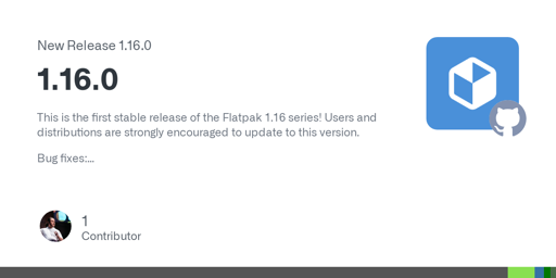 arrow-up11arrow-down1external-linkFlatpak 1.15.91 released (1.16.0 release candidate)plus-squaregithub.comJohn@lemmy.worldEnglish · 11 months agomessage-square0linkfedilink