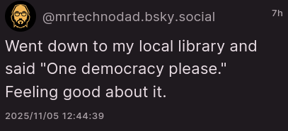 Before that I lived in a different city and the polling place was in the courthouse, and it had the ten commandments posted up.