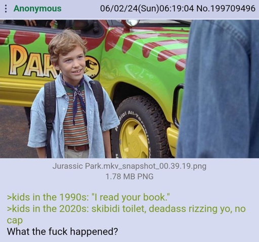 arrow-up1454arrow-down1imageAnon watches Jurassic Parksh.itjust.works🍹Early to RISA 🧉@sh.itjust.worksM to Greentext@sh.itjust.works · 8 months agomessage-square105linkfedilink