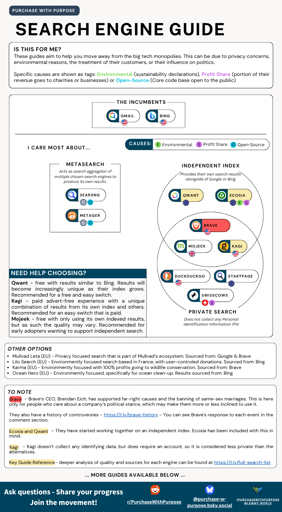 This was helpful, but I wonder if years a way to indicate where some of the engines primarily source their results? Duckduckgo uses Bing by default (although you can search with Google via the