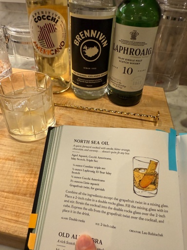 North Sea Oil is an excellent drink. Didn’t have exact ingredients but was my first time with aquavit. Really liking the taste.