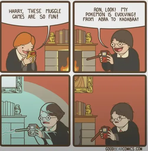 Hermoine: “No no no! Your pronunciation is all wrong. It’s Avada Kedavra, not abra kadabra!”
