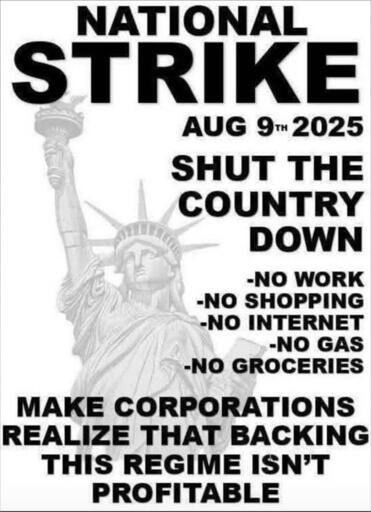 I’m convinced that these posts are false flags to give the idea of a general strike a bad name. A real general strike requires planning, coordination, saving for lack of income, commitment from individuals and communities. This would take a long fucking time, probably years, to put together. This shit ain’t fucking it.