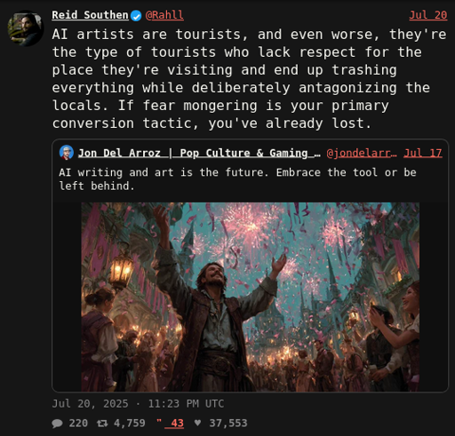 arrow-up1419arrow-down1imageAn Excellent Analogypawb.socialThefuzzyFurryComrade@pawb.socialM to Fuck AI@lemmy.world · 3 months agomessage-square39linkfedilinkfile-text