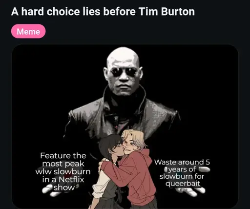 I mean the meme is to have the peak wlw slowburn, which I think She-Ra does over the course of several seasons. I watched Dragon Prince, but not the others; though they don’t sound like they have wlw slowburn? I’m not really sure what you are meaning.