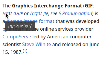 Aatube@lemmy.dbzer0.com to You Should Know@lemmy.worldEnglish · 28 days agoYSK When you hover over a piece of the phonetic notation on (English) Wikipedia, it shows you an example for its pronunciationsh.itjust.worksimagemessage-square62linkfedilinkarrow-up1406arrow-down113file-textcross-posted to: til@lemmy.world