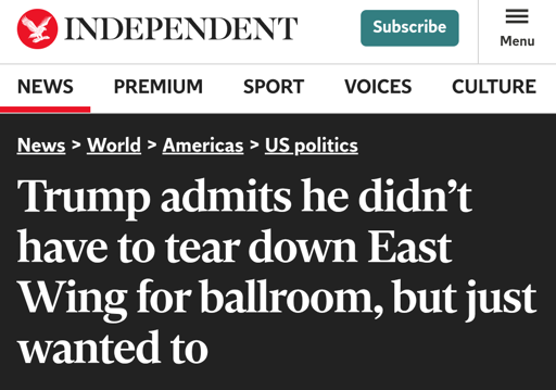 It also makes for some brilliant imagery of what Trump is doing to the country and he knows it. He’s both literally and figuratively tearing down and replacing the seat of power, in ways that will be technically difficult, expensive and time consuming to restore or replace. And like any structure that gets a poorly conceived modification, his changes to the country won’t be torn down and reverted to their earlier state, they’ll most likely be dressed up, the most egregious flaws will be reworked, and some of Trumps changes will remain for a long time without update. Ideally all of Trumps changes will be torn down and a completely new structure will replace them, but that’s ambitious, expensive and disruptive, plus if the wrong architect does so the entire structure can be far worse than it started.