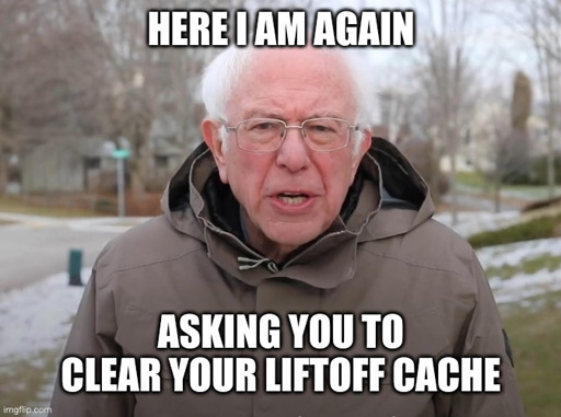 Don’t forget to clear your Liftoff cache. Liftoff currently doesn not have a auto clear cache feature.