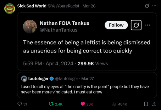 Ragdoll X@sh.itjust.worksOPtoPolitical Memes@lemmy.world•Empathy for me, but not for thee
